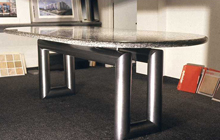 | Boardroom table with two inch terrazzo top and five inch diameter steel tube construction